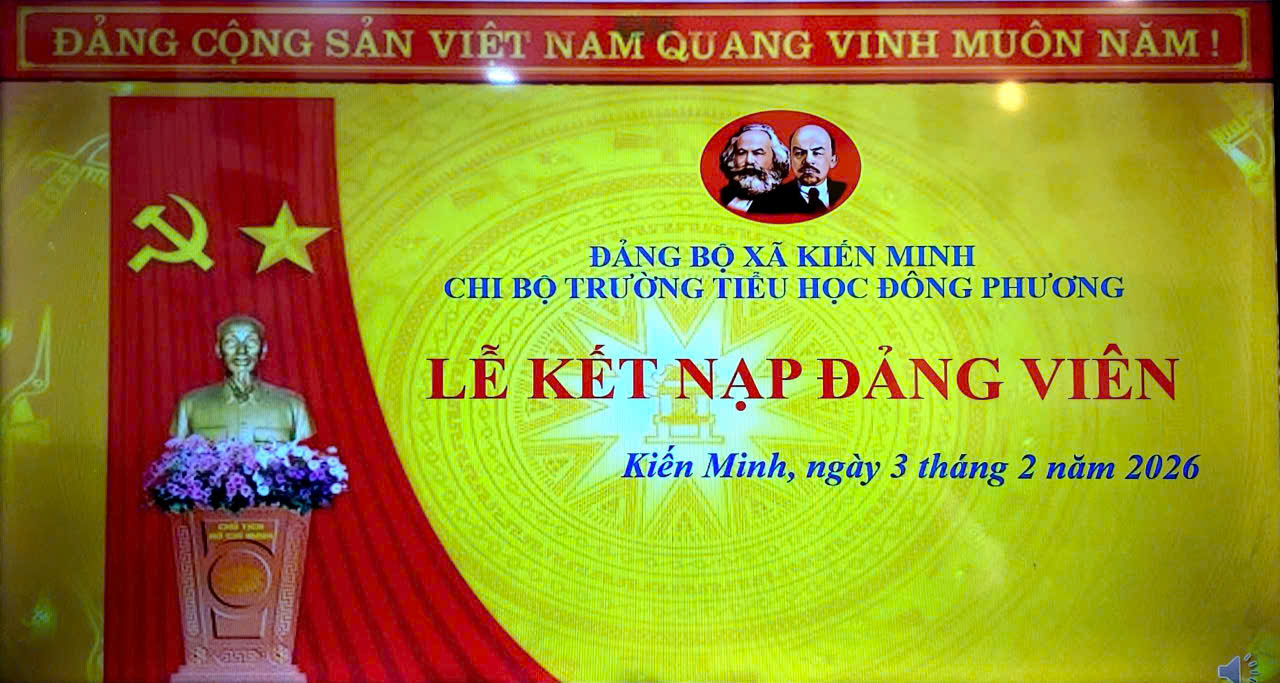 Trong không khí sôi nổi của những ngày đầu xuân và chào mừng kỷ niệm 96 năm Ngày thành lập Đảng Cộng sản Việt Nam (03/02/1930 - 03/02/2026), chiều ngày 03/02/2026, Chi bộ trường Tiểu học Đông Phương đã long trọng tổ chức Lễ kết nạp Đảng viên mới cho quần chúng ưu tú Trương Thị Kim Chi.